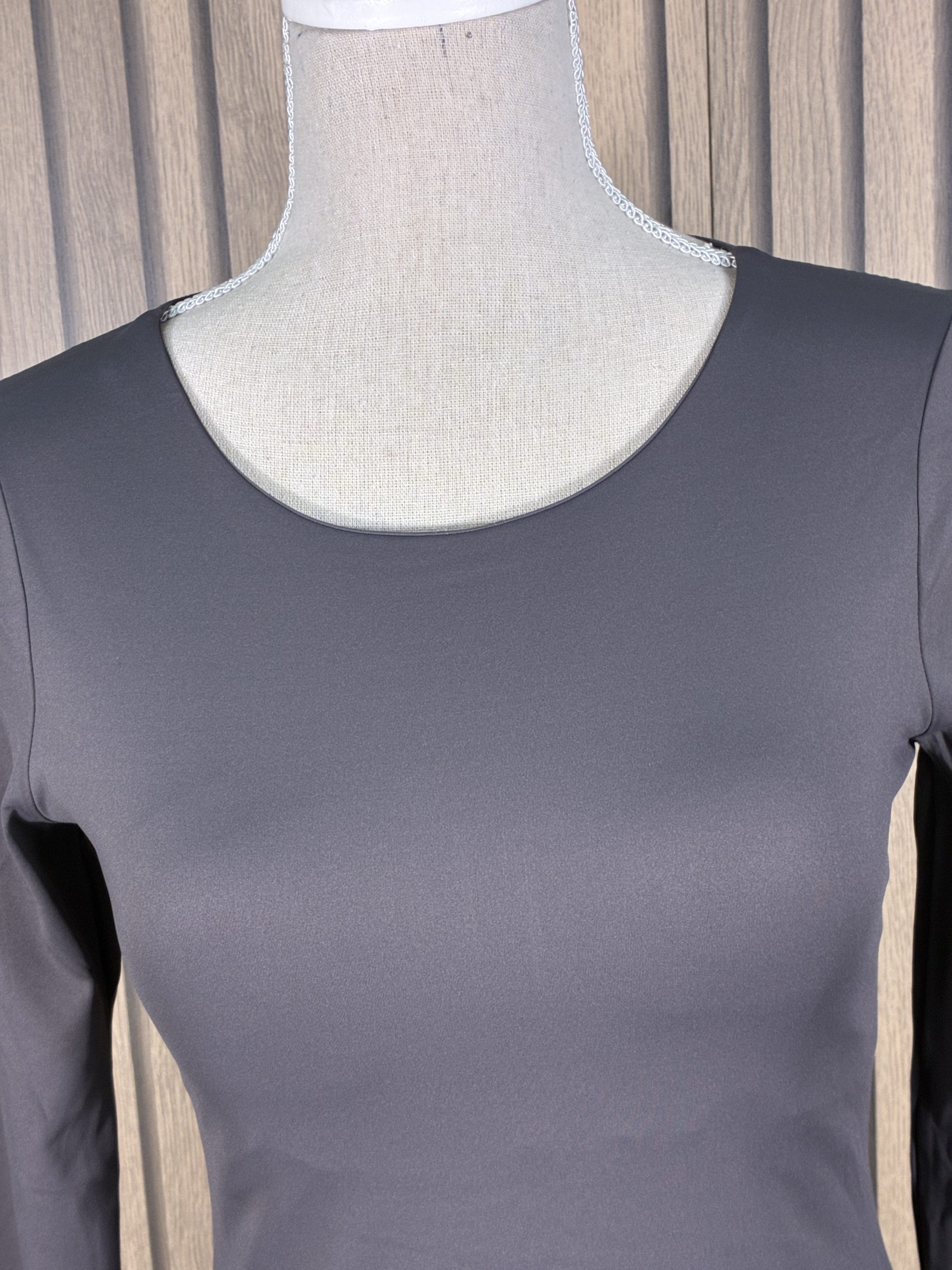 Body de cuello redondo y manga larga, confeccionado en un tejido elástico y confortable (83% poliéster, 17% elastán). Presenta doble capa en la zona del pecho con sujetador incorporado, que aporta sujeción y comodidad. Disponible en varios colores, es una prenda básica y elegante, ideal para combinar con cualquier estilo.