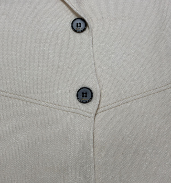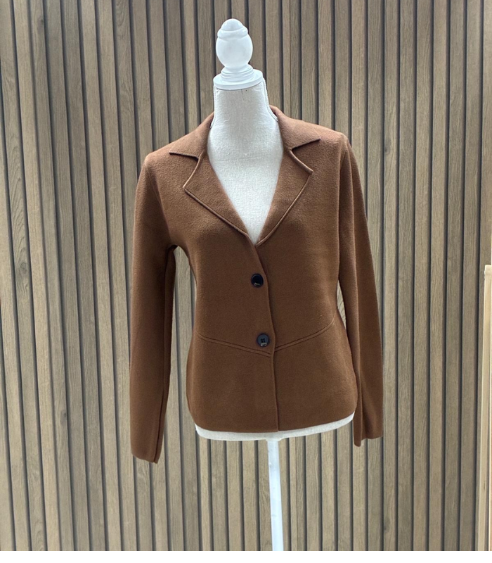 Chaqueta de lana de corte clásico y atemporal, perfecta para completar looks elegantes y sofisticados. Presenta cuello con solapa que aporta estructura y estilo, y cierre frontal con dos botones, realzando su diseño refinado.
